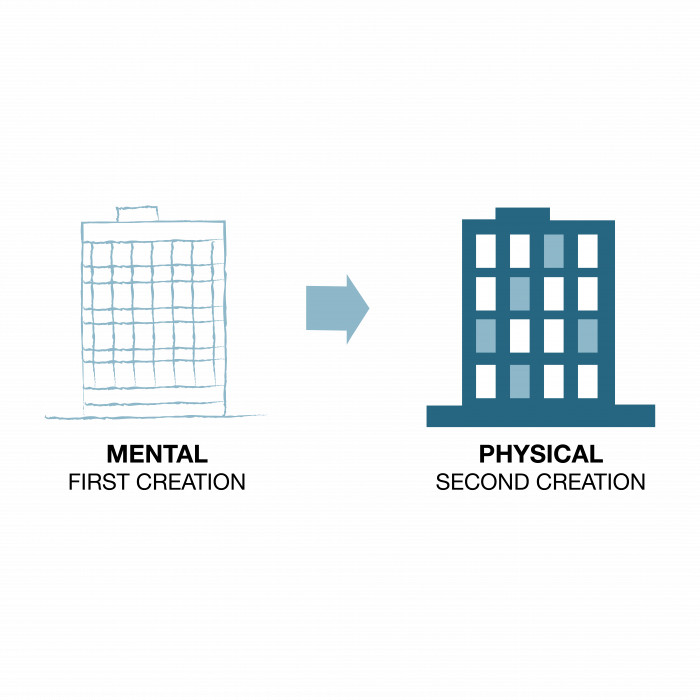 L’habitude 2 : Commencez avec la fin en tête est basée sur l’imagination – la capacité d’imaginer dans votre esprit ce que vous ne pouvez pas encore voir avec vos yeux. Elle repose sur le principe selon lequel toute chose est créée deux fois. Il y a une création mentale (première) et une création physique (deuxième). La création physique suit la création mentale, tout comme un bâtiment suit un plan.